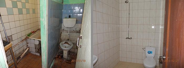 У санвузлах зроблено гідроізоляцію, що дасть змогу уникнути затоплення кімнат мешканців гуртожитку.