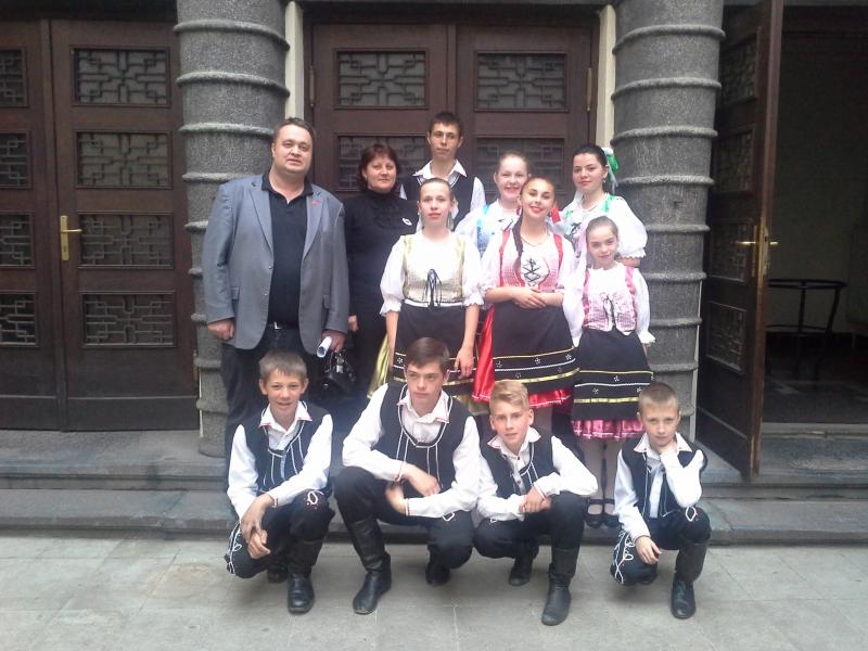 На фото: Мирослава Огразанська, діти з старшої групи хореог. колективу Наша файта, та директор філії благодійної організації "дітей з дитячих будинків "Посмішка як подарунок"" -- для східної Словаччини та Закарпаття, м. Кошіце.