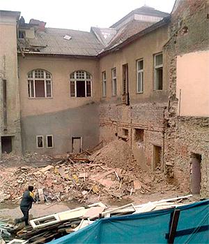 Якою буде подальша доля історичної будівлі в центрі Ужгорода, що була однією з його візиток — це питання нині турбує багатьох ужгородців, які ще донедавна пишалися своїм містом. Мешканці, які мають квартири по сусідству з об’єктом, останнім часом стали свідками особливо активних «рухів» на території об’єкта (на фото).