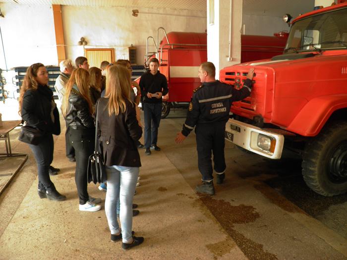 Рятувальники роз’яснили молоді як за допомогою первинних засобів пожежегасіння приборкати полум’я на початковій стадії. Окремо увага акцентувалася на процесі гасіння великих пожеж за допомогою спеціального обладнання, яке знаходиться на озброєнні рятувальників.