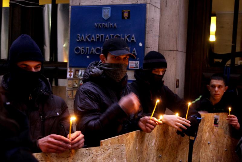 Вчора ввечері під стінами Закарпатської ОДА зібралися люди, щоб вшанувати загиблих в Києві.