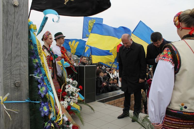 Відтак, під час урочистого заходу перед учасниками зібрання виступили: дослідник історичних подій Карпатської України, доктор історичних наук, професор УжНУ, депутат облради Микола Вегеш, Хустський міський голова Володимир Кащук, голова обласної молодіжної спортивно-патріотичної організації «Карпатська Січ» Тарас Деяк, представники київського та закарпатського Майданів, очевидці тих подій та закарпатські активісти Євромайдану.
