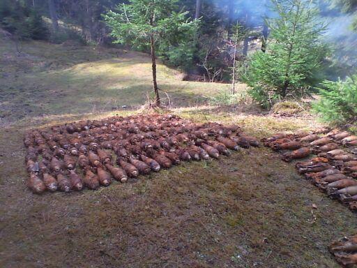 Вчора, 27 березня піротехніки Аварійно-рятувального загону спеціального призначення вилучають цілий арсенал боєприпасів часів Другої світової війни, що було виявлено напередодні, в лісовому масиві смт Ясіня Рахівського району.