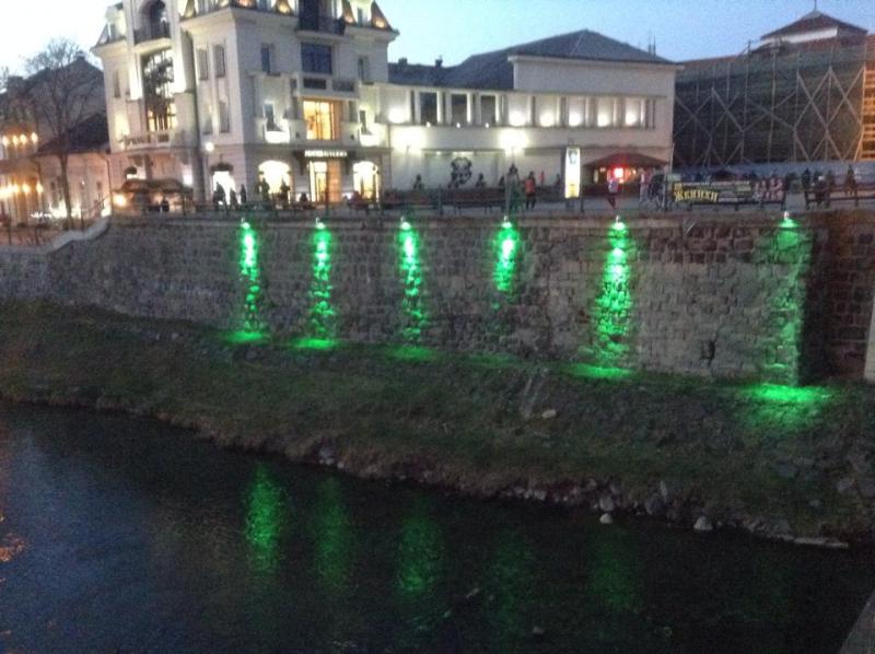 17 березня відзначають День Св. Патрика. Відтак і Ужгород - у зеленому освітленні. Фото - з профілу Закарпатський турист у мережі Facebook.