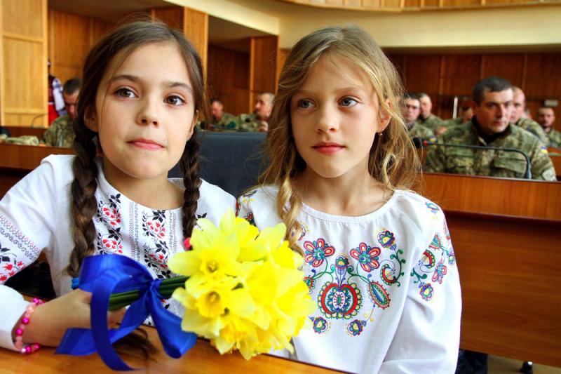 ФОТОРЕПОРТАЖ: Дітки у вишиванках вшанували військових в Ужгородській міськраді