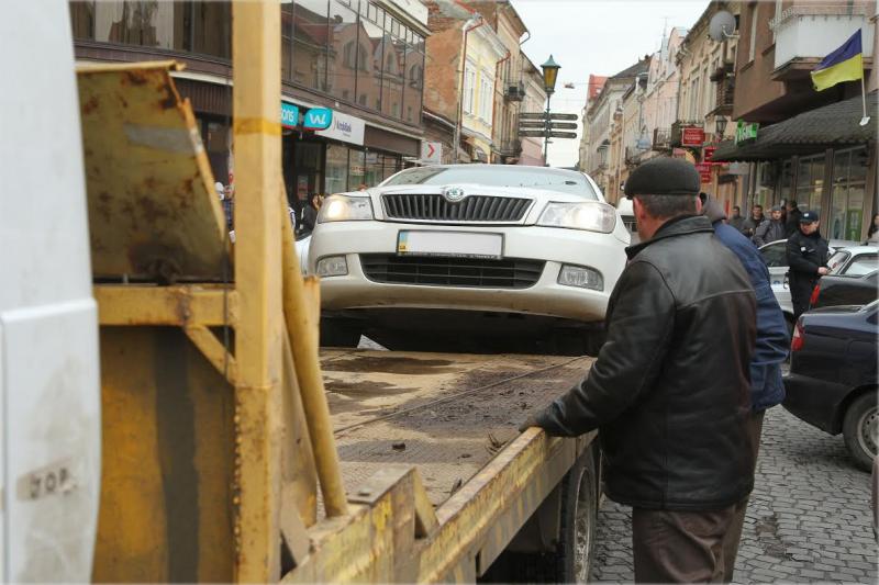 ФОТОФАКТ: Як поліція евакуйовує неправильно припарковані авто в Ужгороді