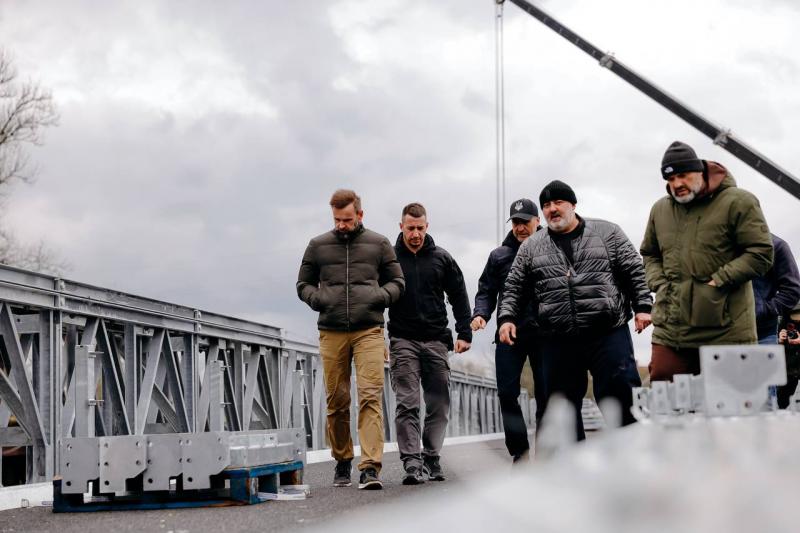 Під час наради з інженерами на будівництві наголосив на необхідності оперативного зведення мосту в раніше узгоджені строки.