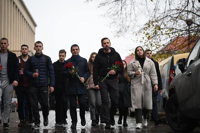 До пам’ятного знаку борцям за свободу і незалежність на площі Народній в Ужгороді поклали квіти й лампадки Віктор Микита - голова Закарпатської ОДА, Роман Сарай - голова Закарпатської обласної ради, представники Молодіжна рада при Закарпатській ОДА, студенти та громадськість.