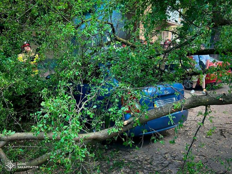 Наслідками буревію на Закарпатті стали повалені дерева та понівечене авто (ФОТО)