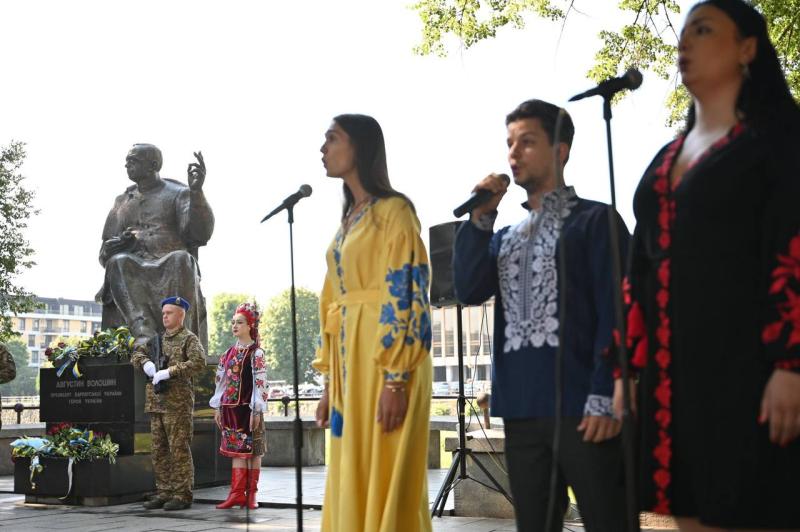 Сьогодні разом із військовими, представниками органів місцевого самоврядування, правоохоронних структур, дипломатичних установ, релігійних спільнот та громадськістю з нагоди свята поклали квіти до пам’ятника Августину Волошину, президенту Карпатської України.