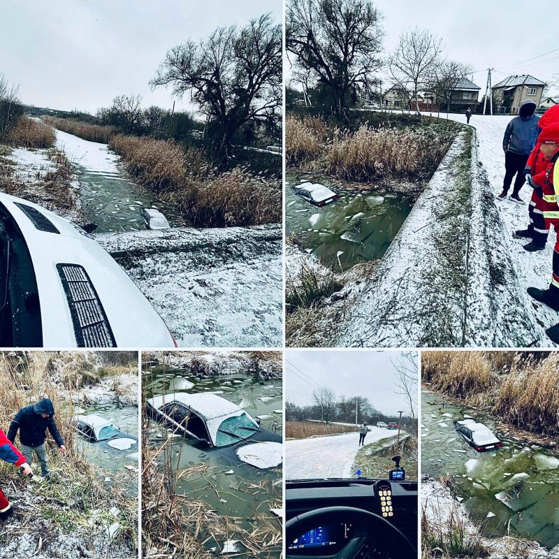 У Берегові автомобіль з’їхав зі слизької дороги і впав у водойму
