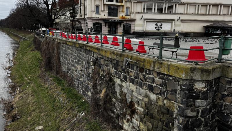 В Ужгороді на Театральній площі через ризик обвалу відгородили підпірну стінку