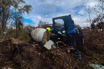 На Берегівщині бетонозмішувач з’їхав з дороги і перекнувся - постраждав водій