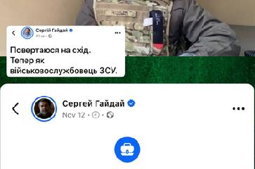 “Повертаюся на схід. Тепер як військовослужбовець ЗСУ”, - повідомив Гайдай у соцмережах, не уточнивши куди саме.
