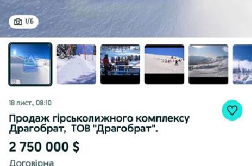 На платформі OLX виставили на продаж корпоративні права ТОВ «Драгобрат», якому належить найвисокогірніший гірськолижний курорт України, розташований на висоті близько 1400 метрів над рівнем моря.