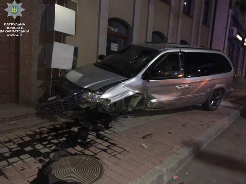 В Ужгороді п'яний водій вилетів на тротуар і розбив машину