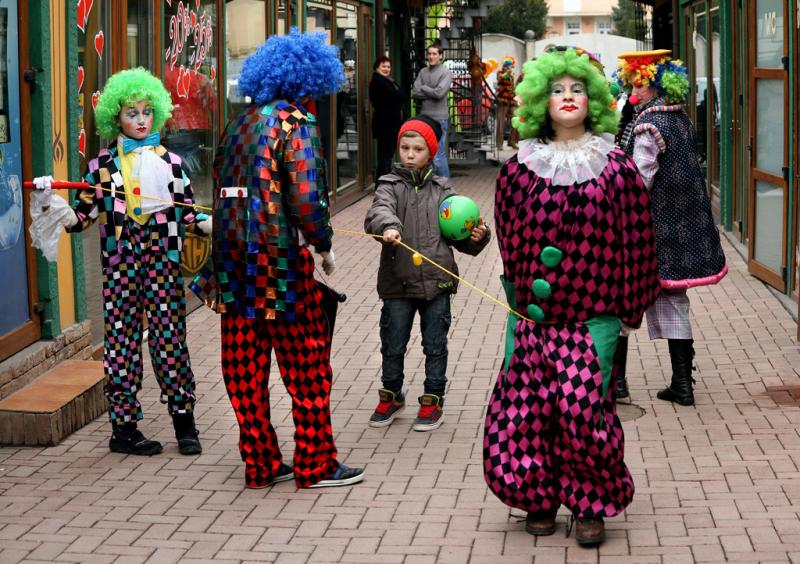 Клоуни вчора розважали перехожих у провулку(ФОТОРЕПОРТАЖ)