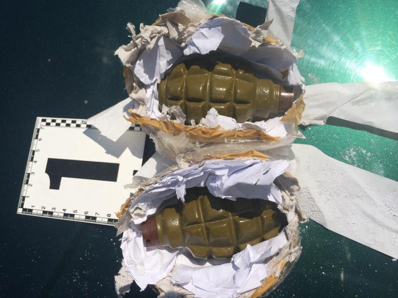 Під час огляду пакунку правоохоронці виявили та вилучили 3 гранати Ф-1 з запалами, вогнепальну зброю з набоями до нього, 1000 доларів США та інструкцію, де вказано кому і яким чином вона має бути передана. У разі вдалої спроби контрабанди, зловмисники планували щомісяця переправляти засоби ураження в Україну.