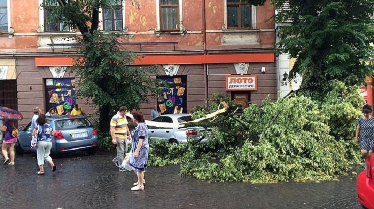 Шквальний вітер, котрий пронісся середмістям закарпатської столиці кілька годин тому, наробив чимало лиха: дерева падали та виривало з корінням просто на припарковані авто.