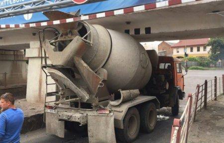 Схоже, водій не розрахував з габаритами автівки, і вперся «міксером» в опору моста.