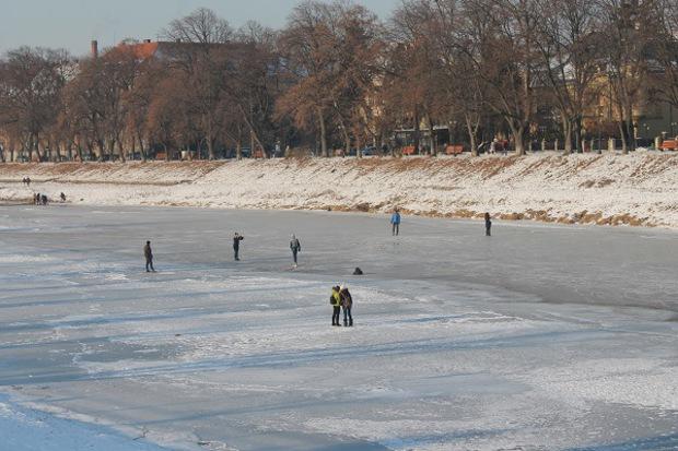 Качкам та лебедям вже навіть знадобилася допомога рятувальників. А от деяким ужгородцям така «застигла» річка до вподоби. Там, від пішохідного до транспортного мосту поодинокі містяни катаються на ковзанах, санчатах, а деякі й просто скорочують свій шлях, переходячи річку з однієї набережної на іншу. Ковзанку на Ужі влаштували навіть діти.