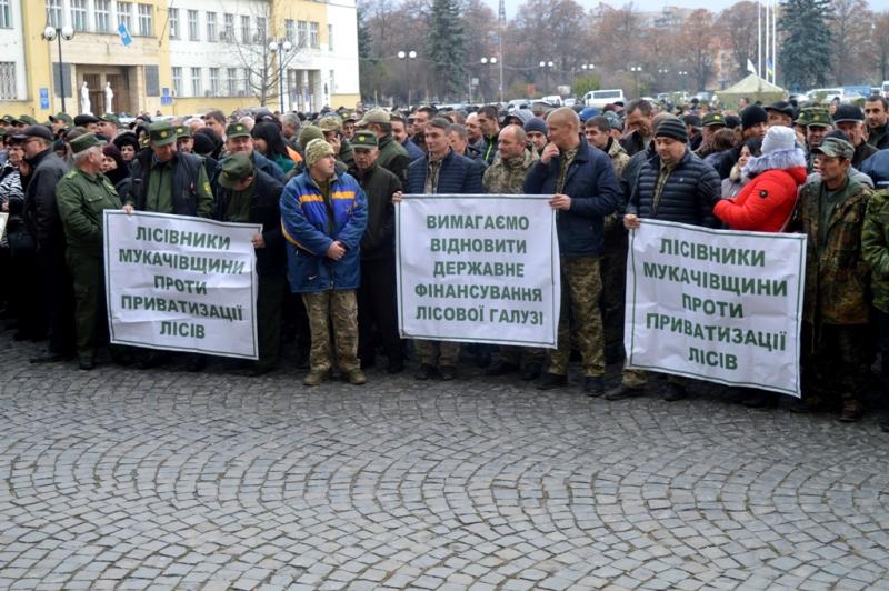 На площі Народній перед будівлею облдержадміністрації лісівники Закарпаття зібралися на велелюдну акцію, щоб засвідчити свою позицію щодо запланованого урядом реформування лісового господарства.