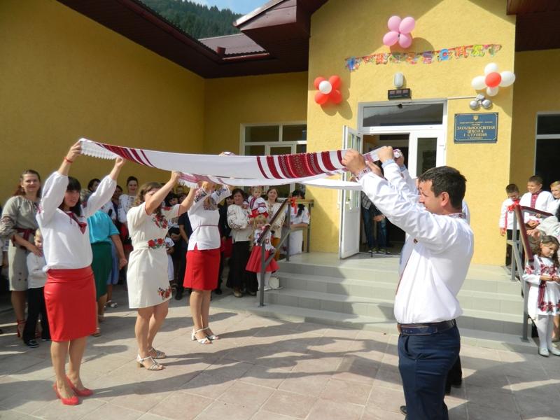 З урочистим відкриттям школи учнів, батьків, педагогів та місцевих мешканців привітали керівники району на чолі з головою Рахівської РДА Павлом Басарабою.