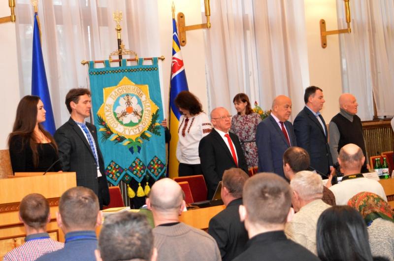 Геннадій Москаль привітав учасників поважного зібрання і вручив почесні грамоти та подяки за сумлінну працю, особистий внесок у розвиток бджільництва області і високу професійну майстерність бджолярам, науковцям галузі, керівникам асоціацій.