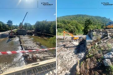 Процес демонтажу аварійного мосту через річку Жденівка, який впав у червні поточного року у Закарпатській області вийшов на завершальну стадію. Вже розібрані верхні конструкції переправи, проводяться підготовчі роботи до монтажу нового мосту.