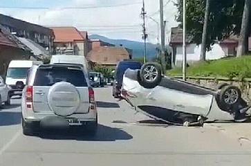 Подія сталася минулими вихідними на вулиці Івана Франка. За повідомленнями очевидців, авто самовільно скотилося з пагорба та перекинулося на дах, перегородивши тротуар і автодорогу.