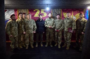 На основному командному пункті 414-ї окремої бригади ударних безпілотних авіаційних систем «Птахи Мадяра», яка відповідає за ділянку фронту поблизу Покровська, Президент України Володимир Зеленський заслухав доповідь командувача Сил безпілотних систем ЗСУ Роберта Бровді та поспілкувався з командирами підрозділів.