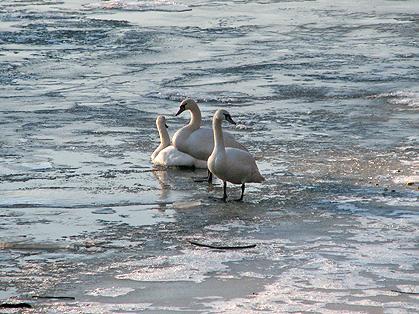 Майже кожної зими в Ужгороді з’являються лебеді. Цього разу жителі міста можуть поспостерігати за трьома особинами. Як правило лебеді тримаються людних місць, зокрема в районі пішохідного мосту.