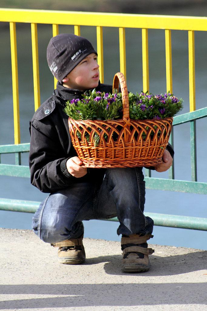 На центральних вулицях міста переважно діти та літні люди пропонують букетики крокусів.