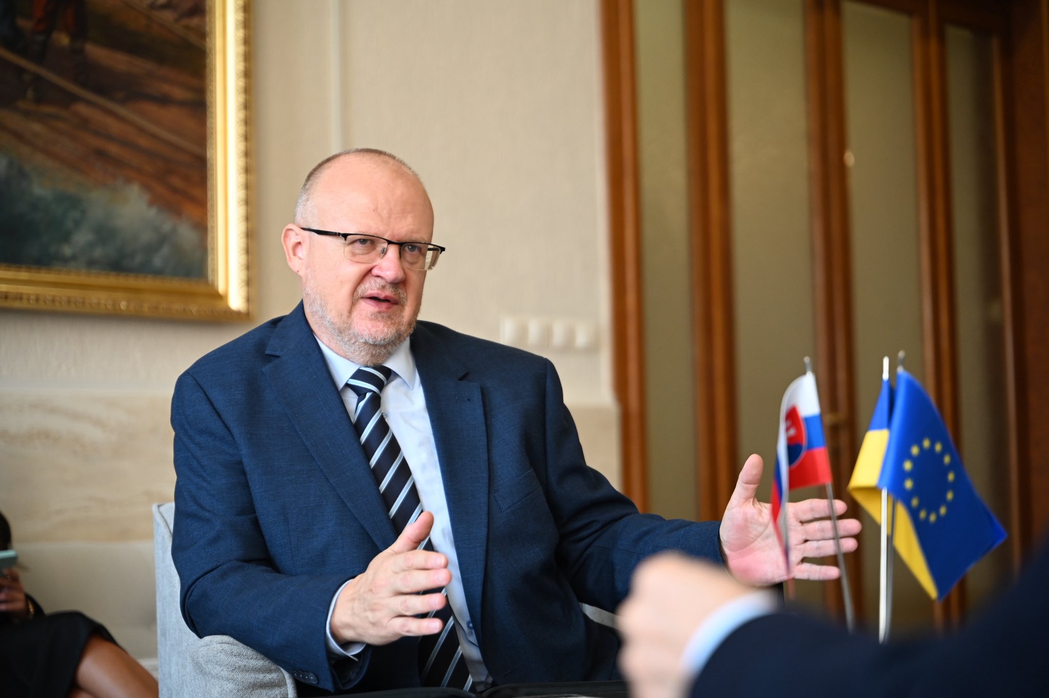 - Подякував словацькому керівництву та народу за підтримку нашої країни у скрутні часи, розповів про результати плідної співпраці з попередником пана Сасая і запевнив у нашій готовності працювати й надалі заради громад обох країн.