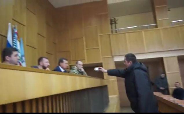 Боєць Руслан Ференці вручив меру Ужгорода “чорну мітку” у вигляді скотчу (ВІДЕО)