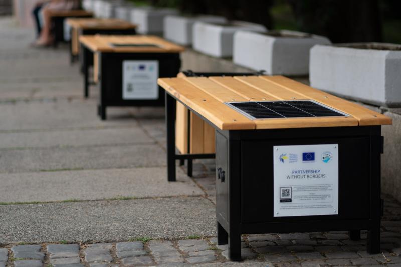 В Ужгороді на площі Поштовій встановили 8 еколавиць із зарядними станціями на сонячних панелях