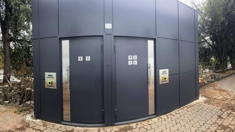 Нагадаємо, вбиральня стаціонарна, з усім підключенням та з картковою системою оплати, має дві кабінки: інклюзивну та звичайну.