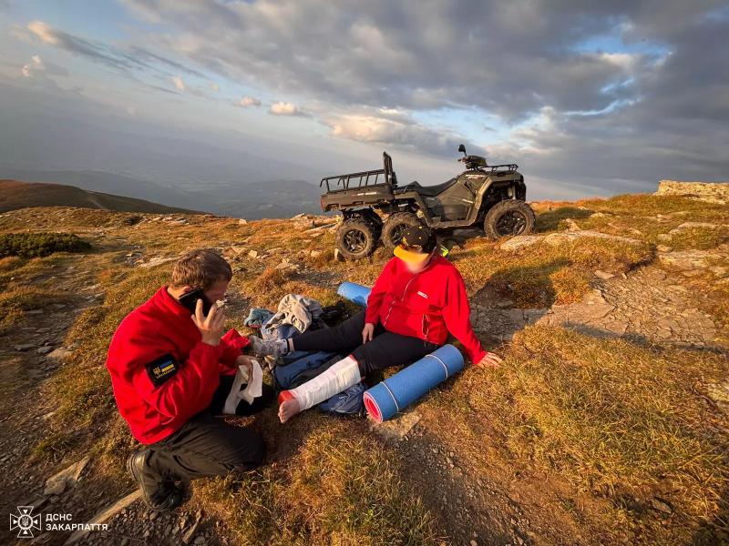 Рятувальники надали потерпілій першу допомогу: наклали шину та зафіксували травмовану кінцівку. Після цього на квадроциклі транспортували жінку з гори до села Кваси, де її передали працівникам екстреної медичної допомоги.