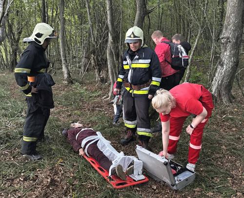 27 вересня зателефонували на лінію 103: «Мама травмувала ногу у лісі між селами Дубриничі та Пастілки. Не може йти. Я спущусь до автозаправки й проведу вас до місця», – повідомив син постраждалої.