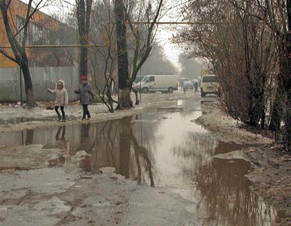 Одна з великих ужгородських калюж розташована в районі базару «Білочка». Це рукотворне озеро вже не один рік перекриває городянам шлях від базару до проспекту Свободи після того, як пройдуть дощі.
