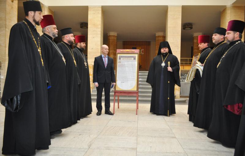 У четвер, 7 лютого, в атріумі Закарпатської ОДА з благословення Предстоятеля Української Православної Церкви, митрополита Київського та всієї України Епіфанія єпископ Ужгородський і Закарпатський УПЦ Варсонофій презентував точну копію Томосу про автокефалію Української Православної Церкви.