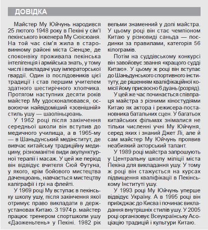 Із бесіди з майстром Му дізнаємося, як він вперше потрапив в Україну. Про це учитель ушу розповідає цілу захоплюючу розлогу історію.