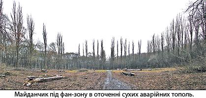 Стосовно ж санітарного чищення й нібито турботи про безпеку відпочивальників, то, за нашими спостереженнями, величезна суха гілляка над головами перехожих на одній із алей парку, зафіксована фотопапаратом ще наприкінці весни, звисає там і досі... А по периметру майбутньої фан-зони залишилися упереміш пірамідальні тополі: різного ступеня зрілості, висоти, чимало серед цього частоколу тополь залишено сухих дерев...