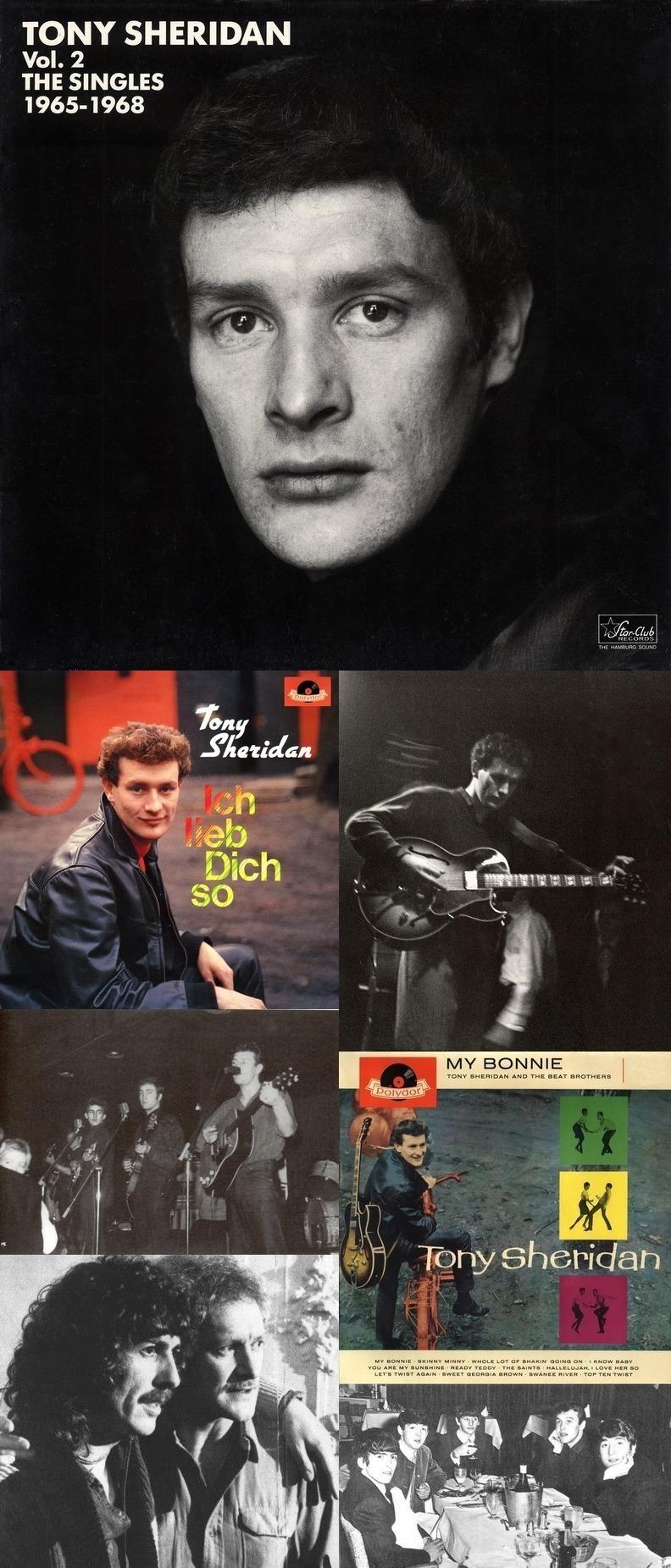Тоні Шерідан – співак та гітарист із Великобританії, перший сингл якого «My Bonnie/The Saints» (1961) був проданий мільйонним тиражем. Відомий як «п’ятий із Бітлз», «старший брат Бітлз», «хресний батько Бітлз» саме він запросив ще майже незнаний гурт взяти участь у записі свого золотого синглу. Пісні «My Bonnie», «The Saints» і «Why (Can’t You Love Me Again)» стали першим студійним записом «The Beatles» у першому складі («Beat Brothers» на платівці), що привернув увагу Брайана Епстайна, який і розкрутив неповторних бітлів. У період запису Джордж Харрісон, який згодом посів 11-те місце у сотні найвидатніших гітаристів усіх часів за версією журналу «Rolling Stone», брав уроки гри на гітарі у Шерідана. У квітні 1962-го «The Beatles» грали із Тоні у Гамбурзі. Вважається, що у ці дні вони записали разом ще два трека: «Sweet Georgia Brown» і «Swanee River». У цей час Шерідан вже очолював «Tony Sheridan Quartet», у складі якого грав Рінго Стар, який пізніше приєднався до «The Beatles». Не дивно, що Пол Маккартні досі називає Тоні «учителем».