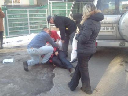 Молодики з місця події втекли. Один зі свідків встиг зафіксувати подію на мобільний телефон. За його словами, серед тих, хто намагався привести потерпілого до тями – один з молодиків (див. фото).