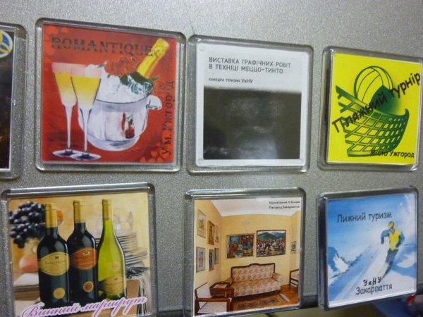 Тетяна Лешко зауважила, що магніти бувають різних видів – глиняні, пластмасові тощо. «Ми використовували і пластмасу, і кераміку. Кожен магніт розповідає про певний туристичний маршрут», - каже Т. Лешко. 30 найкращих магнітів, розроблених студентами-туризмознавцями УжНУ, відберуть для колекції, яка стане доступною туристам поруч з іншими сувенірами про Закарпаття.