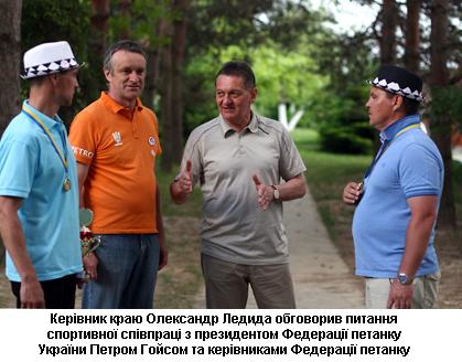 У свою чергу голова Закарпатської облдержадміністрації Олександр Ледида сказав: «Цілком зрозуміло, що найкращою дипломатією в світі є спорт. Буквально напередодні ми стали свідками вже другого поспіль чемпіонства нашого жіночого гандбольного клубу «Карпати» і я докладатиму максимум зусиль, щоб спортсмени прославляли нашу область. Це стосується і петанку. Мені приємно, що саме закарпатські петанкісти є кращими в Україні, а також завойовують нагороди на багатьох турнірах за кордоном, тому ми будемо робити все для того, щоб цей вид спорту і надалі розвивася у краї».