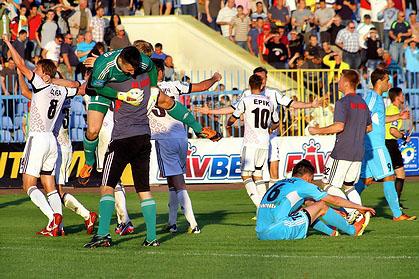 Фото з суботнього матчу "Говерла" - "Волинь", який проходив в Ужгороді. У цьому матчі ужгородський клуб не зміг перемогти і в наступному сезоні гратиме у Першій лізі. Фото Я. Немеша.