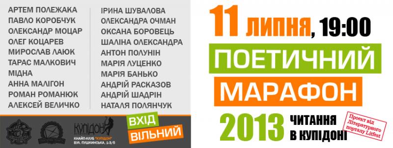 11 липня, у самому центрі літа, у самому центрі Києва (Кнайп-клуб "Купідон") відбудеться Поетичний марафон-2013.
