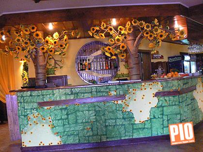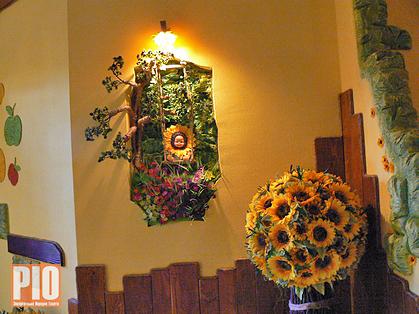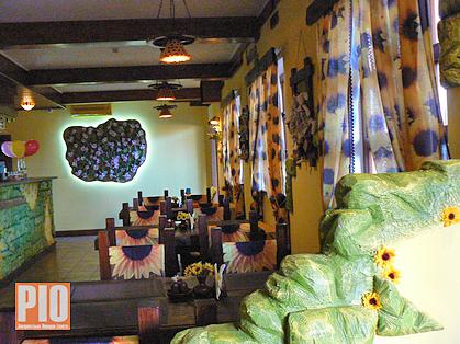 Кафе наскрізь соняшникове, адже все прикрашене соняшниками, офіціантки також вбрані у соняшникове.
